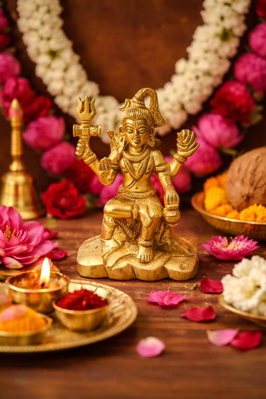 • Divine Shiva Design: Intricately detailed Lord Shiva idol with trishul and symbolic elements